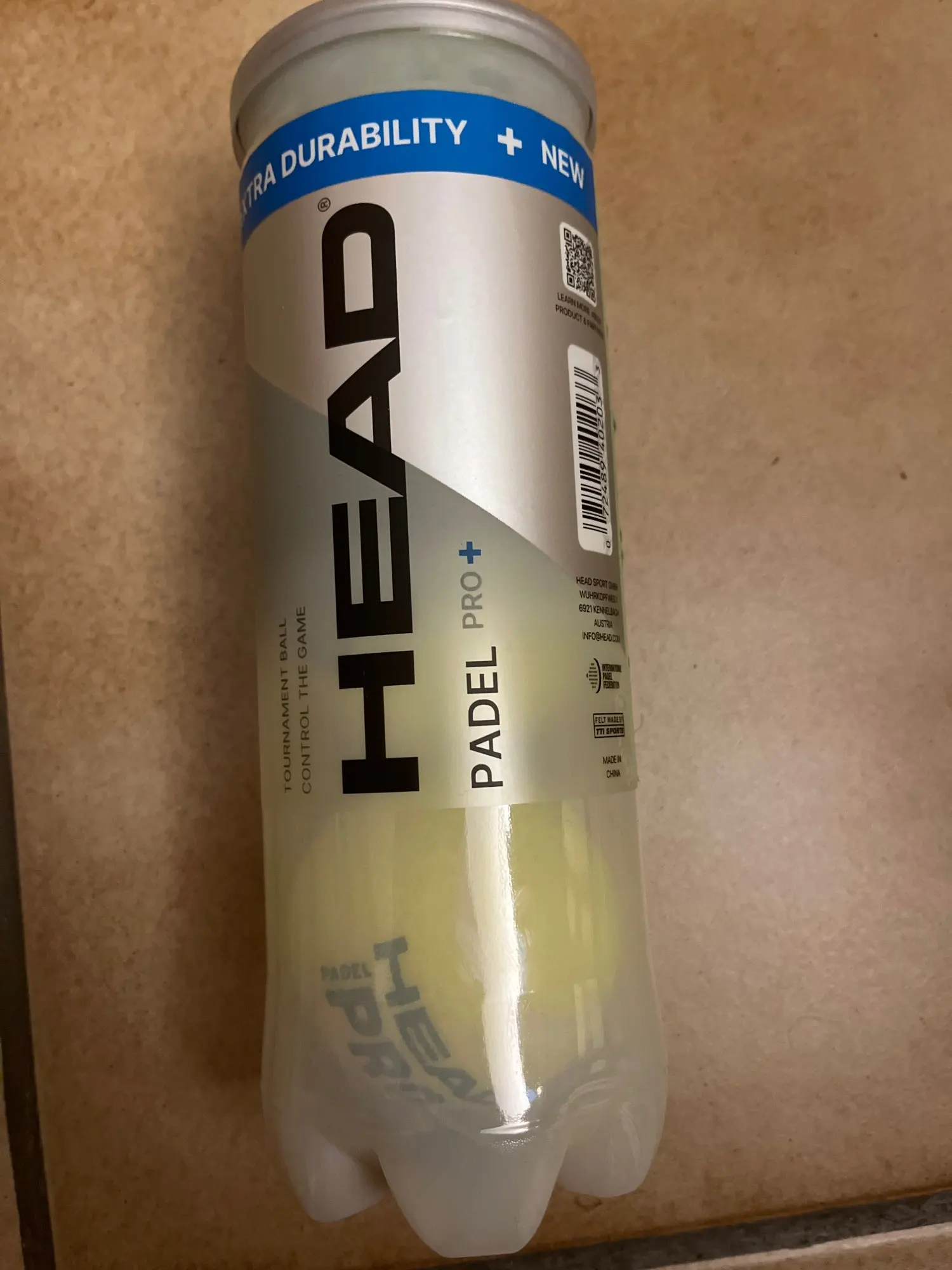 Pressurized box of 3 HEAD Padel Pro balls